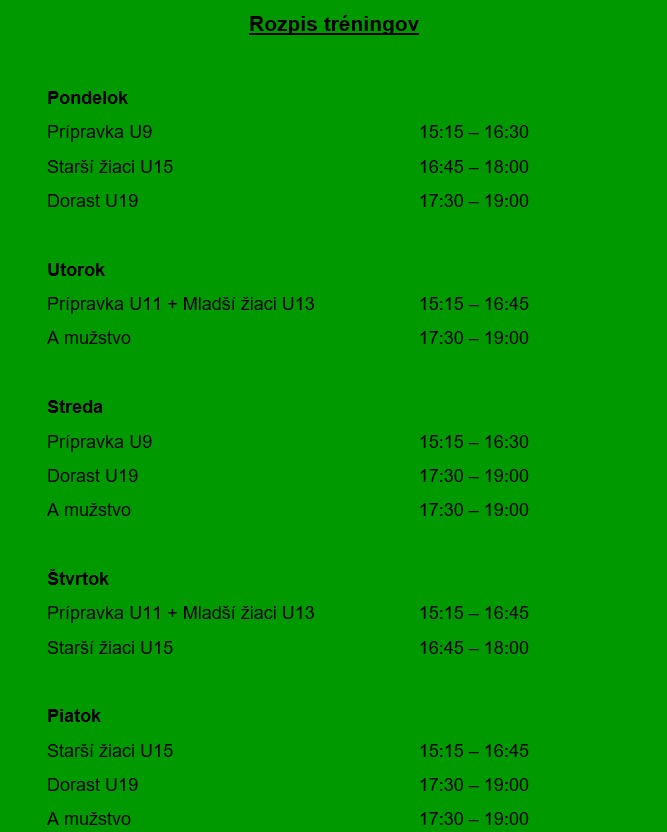 Rozpis tréningov